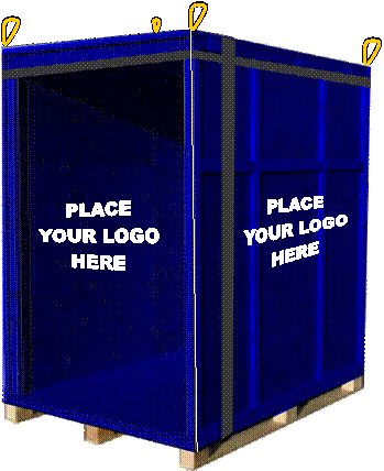 Rocky Industries is one of the only manufacturer specialized in vault crate covers, which they are made out of heavy duty vinyl to stand out under the sun and raining. Our heavy duty vinyl is coated with PVC and UV, Water Resistance treated to protect the valuable items inside of the box.. Our vault crate covers are sewn and welded with heavy duty web slings for easy lifting/covering using regular forks on lift-trucks. Reinforced hems adds the extra durability. Door with hook & loop can be accessed without uncover the whole thing. Placing your own logo on the cover would be a great marketing tool on the road. |