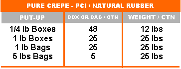 Pure crepe, compound bands, printed bands, extra UVI bands and pallet bands in a variety of sizes are available. Several weights, sizes and colors are also available. We run your custom sizes & colors. |
