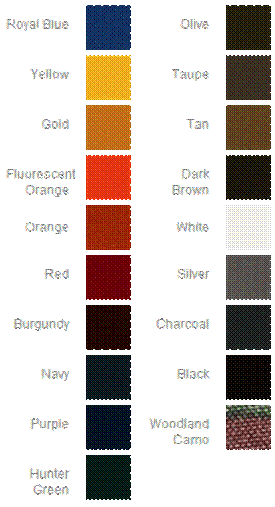 5.25 OZ/SQ (Polyester Oxford 300D)11.25 OZ/SQ (P. Oxford 500D) 10.25 OZ/SQ (Polyester PVC Backed 600Dx300D) |