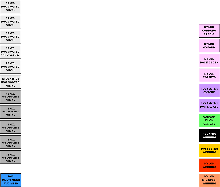 Our PVC Vinyl Polyester Coated/Laminated fabrics come in different weights from 10 oz. to 40 oz for many different purposes. They are very durable and strong that will work for heavy duty applications as well as the light duty applications. These PVC materials are sealable and weldable that they can be connected together to make a longer or wider length. They do come in different colors shown on the below chart. They are widely used in bags, agricultural covers, truck tarpaulins, tents, dams, gym floors, dock curtains, jumpers, and many other tarpaulins. Please refer to our specification chart shown below. |