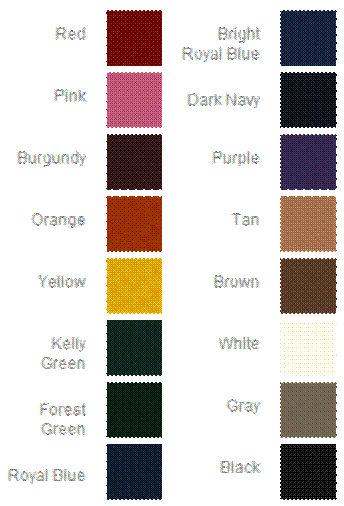 61", 126" available in Red, Yellow, Green, Bright Royal, Tan, White and Gray |