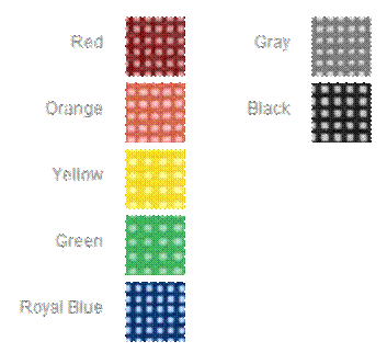 Our PVC Vinyl Polyester Coated/Laminated fabrics come in different weights from 10 oz. to 40 oz for many different purposes. They are very durable and strong that will work for heavy duty applications as well as the light duty applications. These PVC materials are sealable and weldable that they can be connected together to make a longer or wider length. They do come in different colors shown on the below chart. They are widely used in bags, agricultural covers, truck tarpaulins, tents, dams, gym floors, dock curtains, jumpers, and many other tarpaulins. Please refer to our specification chart shown below. |
